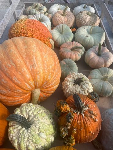 What began in the summer of 2017 as just a few rows of pumpkins in Papa Mike & Uncle Pat's farm garden - planted for their 4 grandkids - has blossomed into more than 4 acres filled with over 100 pumpkin varieties. Three generations of Roberts family work together every season to grow and maintain the pumpkin patch. After years of learning, planning, and improving, we're proud to officially share this special part of Roberts Bros. Farm with our hometown Kansas City community. Whether it's a front porch, a business, or a special event, we would love to bring a little farm-grown, family-inspired, fall magic straight to your door.